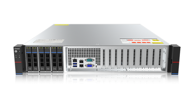 2U双路服务器,最大可支持6个2.5"热插拔硬盘,及2块全高全长双宽尺寸GPU卡,1块半高半长半宽的PCIe卡。